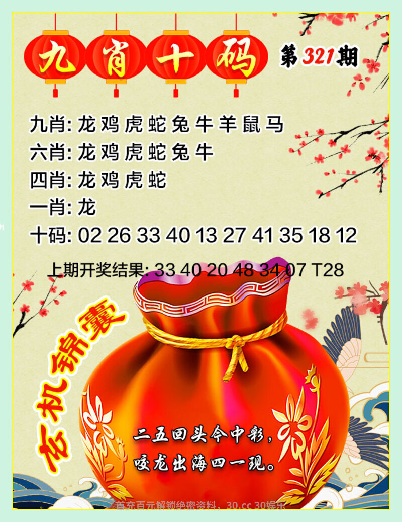 | 321期:复式连肖『蛇兔羊龙虎牛』中3个 |